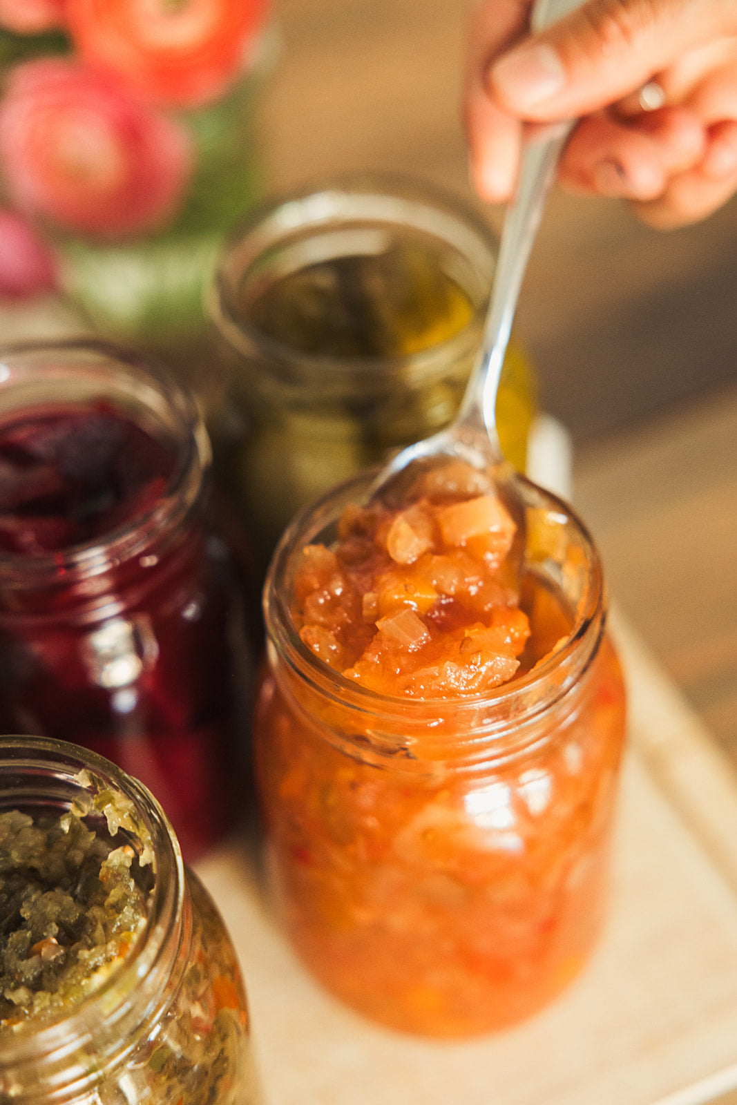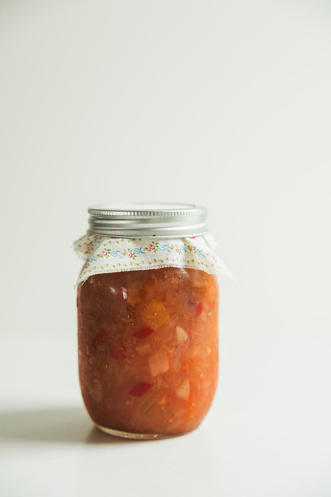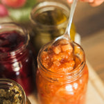 Ingrédients : Tomates, pêches, poires, pommes, oignons, céleris, piments, sucre, vinaigre, épices à marinade, sel.